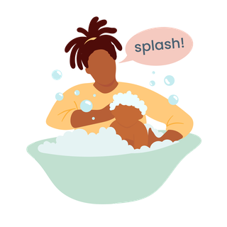 When you’re washing them, tell them what part of their body you’re washing. When they’re splashing, mimic the sound of splashing water by saying "splish, splash, splosh" in different pitches.