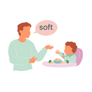 When you feed your baby, talk to them and use simple words to describe it. Repeat the name of the food, for example, "here’s a banana, baby's eating a banana", or "yummy banana!".