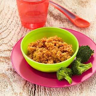 Allow to cool. Chop or mince the pasta bake until smooth with soft lumps. Serve a quarter in a bowl with fork or spoon.