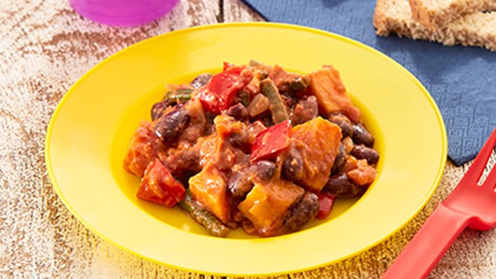 These chicken strips marinated and stir-fried with pepper and onions are a great introduction to spices for your baby. Serve with pitta bread strips. This recipe is great for older members of the family too – simply wrap up the fajita mix in tortillas.