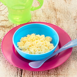 Your baby will learn from you, so it's a great idea to eat with them when you can. Try adding an extra couple of eggs to the mix and serve on toast with tomatoes on the side for your lunch.