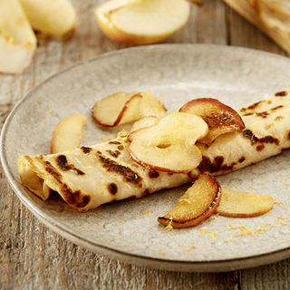 Information:If you like, add a sliced banana to the frying pan with the lemon zest and juice, and mix with the apple before sharing between the pancakes.