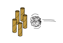 1. Grab some items to be your targets (like toilet roll tubes, empty cartons or anything similar you can knock over without breaking!) and some tennis balls, or scrunch up old newspaper to make 2 balls – these are your vibranium shields!