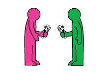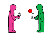 1. Both players make a racket from a rolled-up newspaper or magazine, and grab a ball.