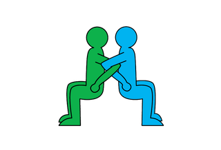 1. Facing each other, hold hands with your toes touching. Lean back supporting each other, bend your knees, then come back up.