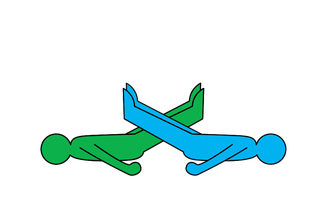 3. Lie on your backs opposite each other, so your toes are level with the other person's knees. Then circle your legs over theirs.