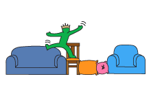 Create a circular obstacle course with cushions, sofas and chairs. Make sure everything you use is steady and you're on soft flooring.