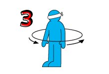 "Camilo" spins around 3 times. Now they have to try and find the other players without seeing them.