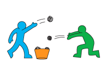 One person is Captain America and must empty the container, throwing out 1 ball at a time.