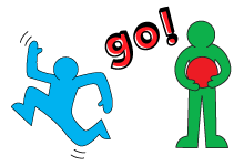 Buzz Lightyear shouts "Go!" and everybody else runs away.